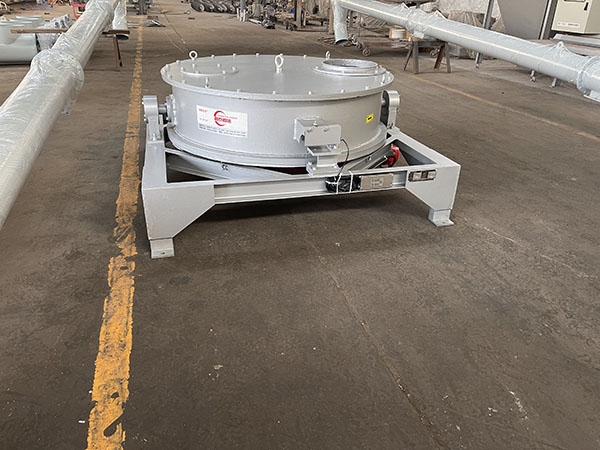 物料从支点轴线两侧进入圆盘秤体,其冲击力将同时产生对称力距,相互抵消,不影响秤体平衡;另外,即使某种原因冲击力有偏移,由于该力在支点附近,所产生的力距也很小。